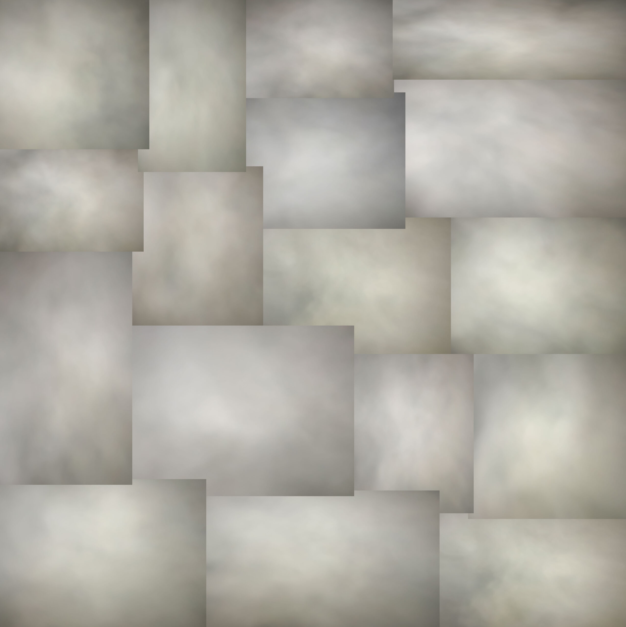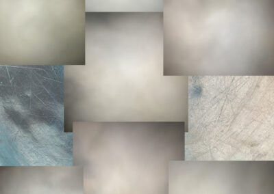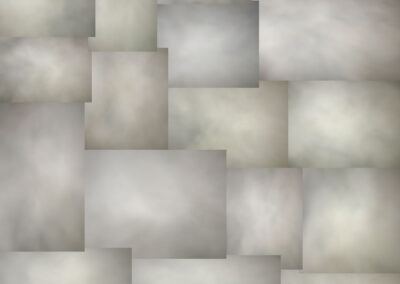 Little puffs of condensing air make up this work – Breathing, The Breath of the Artist. The observation of a cycle, as repetitive as it is ephemeral, is a necessity occurring for every human being around 14 times per minute. This is incessant, ad infinitum, or at least until one’s end. The act of breathing is so banal that the contradiction has moved me to cherish each manifestation like an epiphany. I have preferred not to merely document the phenomenon but rather “capture” a trace of exhalations, redeploying them into the piece. The subjects were observed and captured at night; laden with condensation therefore they appeared visible [to photography]. I have collected these views, objectivizing them before they expired and are forgotten which occurs throughout humanity billions of times every second. I like the idea that something so insignificant might metamorphose into something substantial. An ephemeral phenomenon has become immaterial. Through the assemblage of these images, the subject has become a doppelganger that exists separately and has an existence long after the original exhalations have dissipated into the atmosphere. Their origin has become but a memory. Do we remember what we were feeling at the time of each breath or is our memory clouded with our passing history. Questioning might urge us to retrace the past context of that history or rather progress to the present; everybody has their impulses.