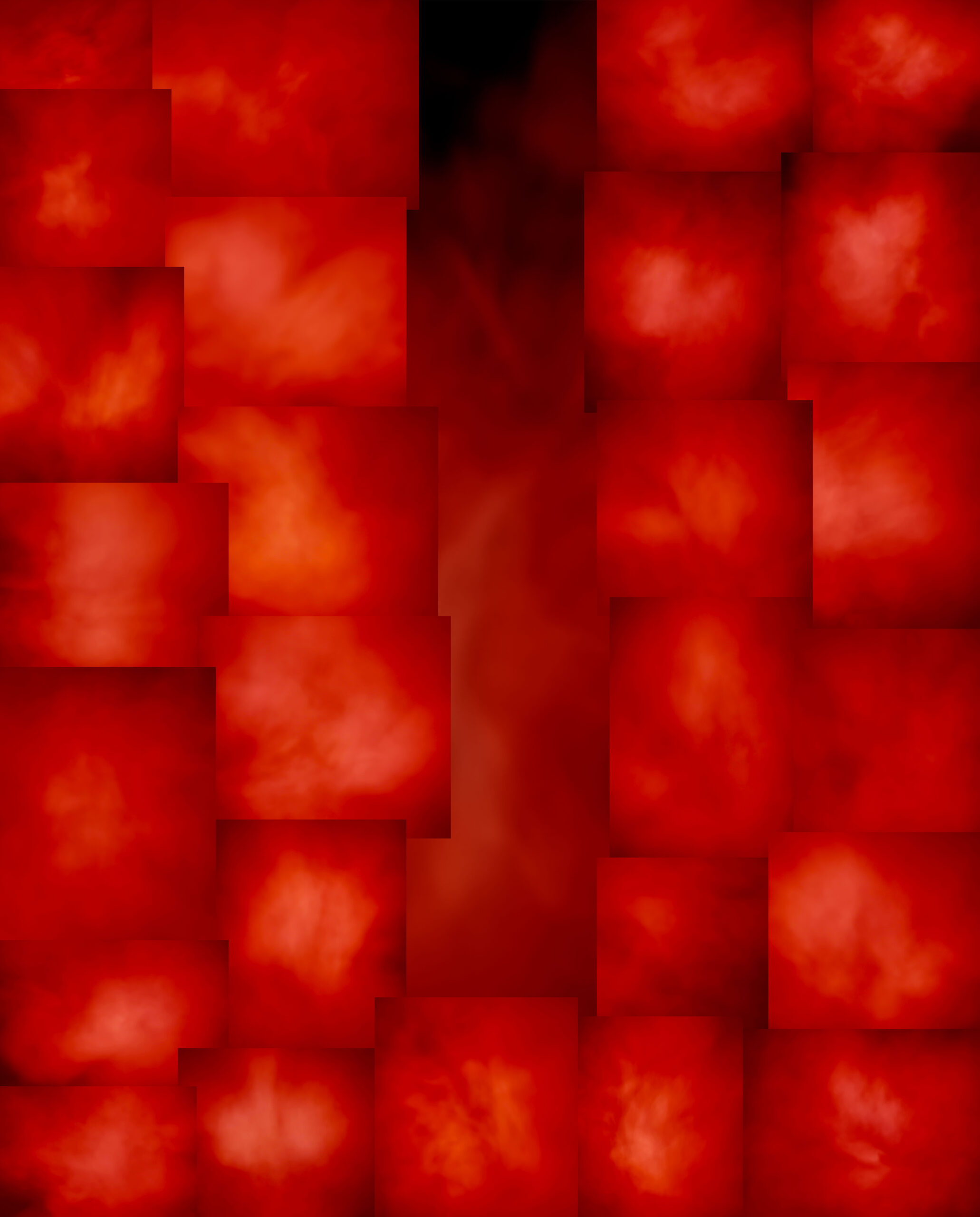 This duality, between the works’ solidity and the effervescence and impermanence of what they capture, is one of Lewis’s recurring themes. As he remarked in an interview on his earlier x-ray works, where he described how technology brought what might have formally been invisible to the fore, “We are dealing with the concept of transferal…although this realm is very much in existence, everywhere around us like climbing into space.” The space we are invited into here may very much be personal, private, and but for the intersections of technology, imperceptible, but within each fragment and each frame, each singular image creating its own unique manifestation of the same, we find shared understandings, shared values, shared perceptions, and shared experiences. While we may lack the capacity to put what we see into words, we can rest well assured in its simple, universal, and endless meaning: breathing.